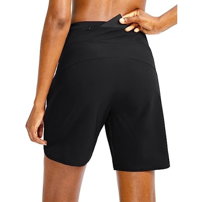 Dyorigin Women's 7" Athletic Running Shorts with 3 Zipper Pockets Long High Waisted Shorts Women for Workout Gym Hiking