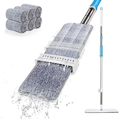 Almcmy Self Wringing Flat Mop, Hands-Free Washing Mop with 6 Reusable Microfiber Pads, Dry & Wet Dust Mop for Hardwood